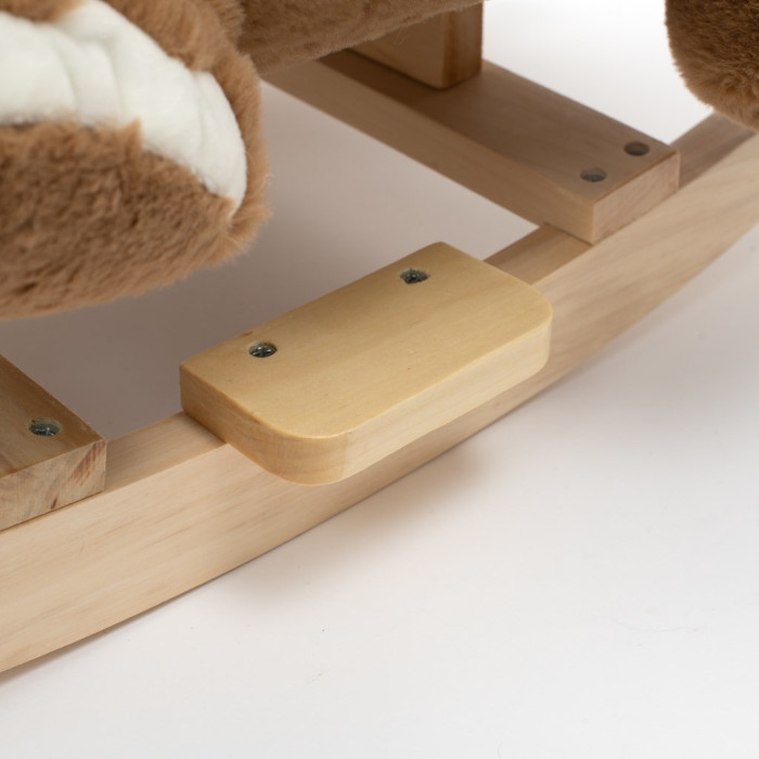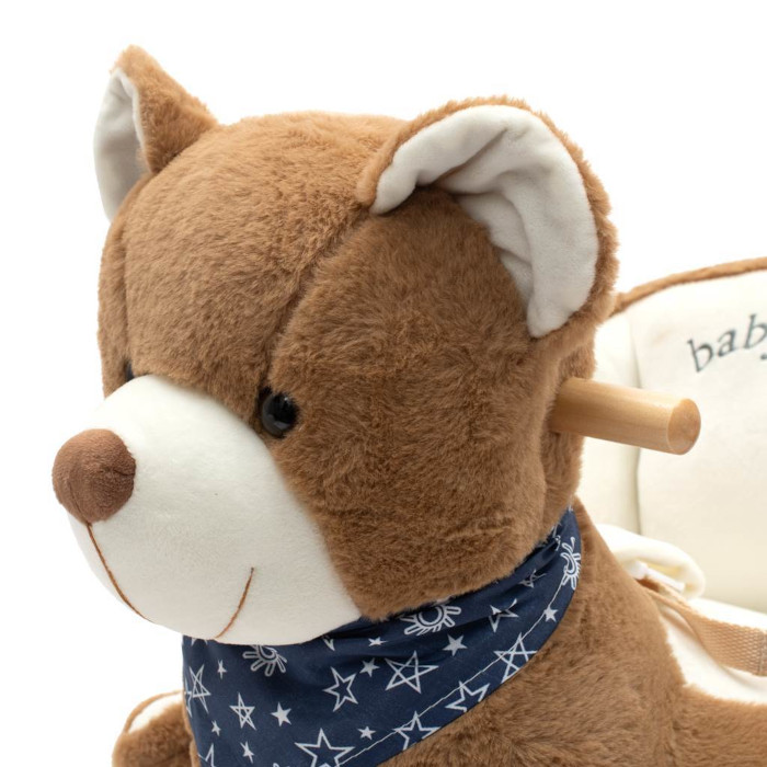 Ένα όμορφο κουνιστό αρκουδάκι έχει σχεδιαστεί για παιδιά που τους αρέσουν οι περιπέτειες. Μια άνετη σέλα, ξύλινα χερούλια και ολισθητήρες θα εξασφαλίσουν άνεση και ασφάλεια ενώ το μωρό κουνιέται αμέριμνο. Η αρκούδα είναι διακοσμημένη με ένα όμορφο σάλι. Όταν πιέζετε το αυτί, η αρκούδα θα τραγουδήσει ένα τραγούδι. Ενώ παίζει, το μωρό πρέπει να συντονίζει τις κινήσεις του με το ρολό, το οποίο διεγείρει τον κινητικό του συντονισμό και αναπτύσσει τη φαντασία και βελτιώνει την αίσθηση της ισορροπίας. Η θήκη της μπαταρίας είναι κρυμμένη κάτω από την κοιλιά της ουράς. Οι μπαταρίες LR44 δεν περιλαμβάνονται.