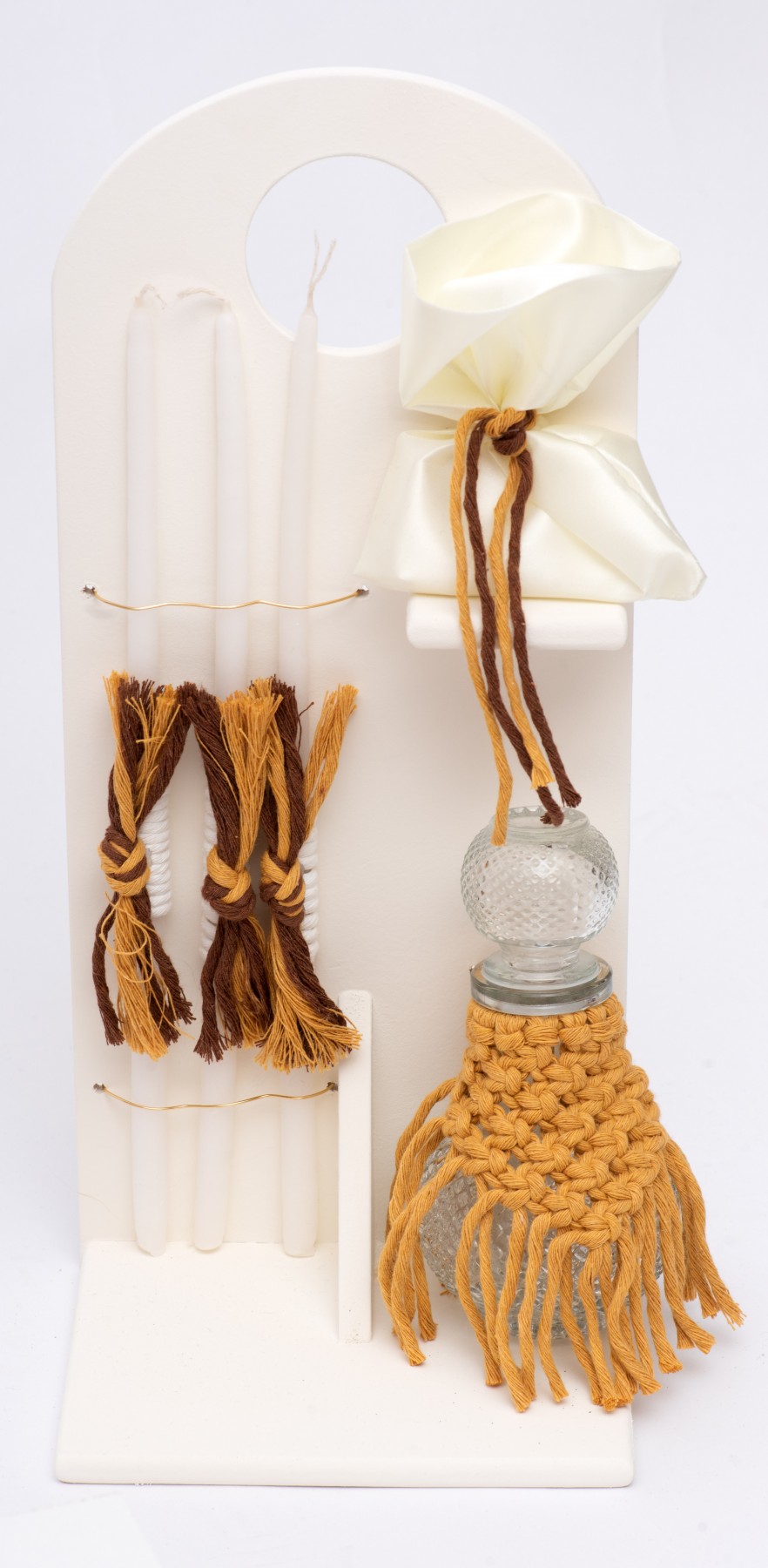 - Βαπτιστικό ξύλινο κουτί καπελίερα, διακοσμημένη με macrame.