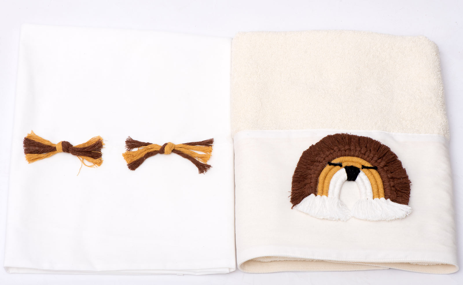 Χειροποίητο Σετ βάπτισης με θέμα Macrame Λιοντάρι.